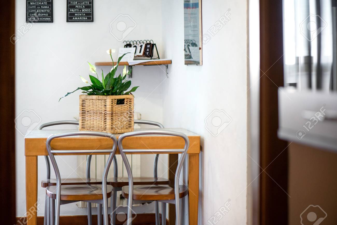 Stylish And Sunny Kitchen Interior With Accessories Wooden